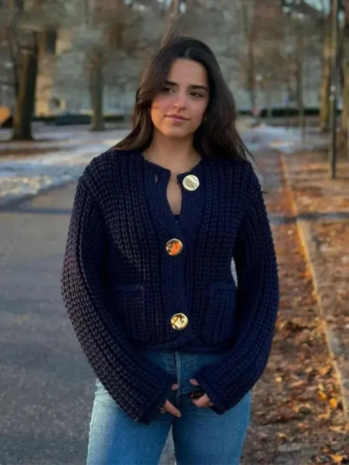 Spring Women’s Knitted Button Cardigan with Pockets