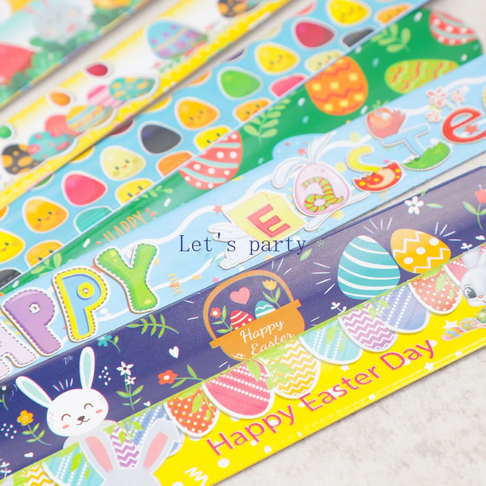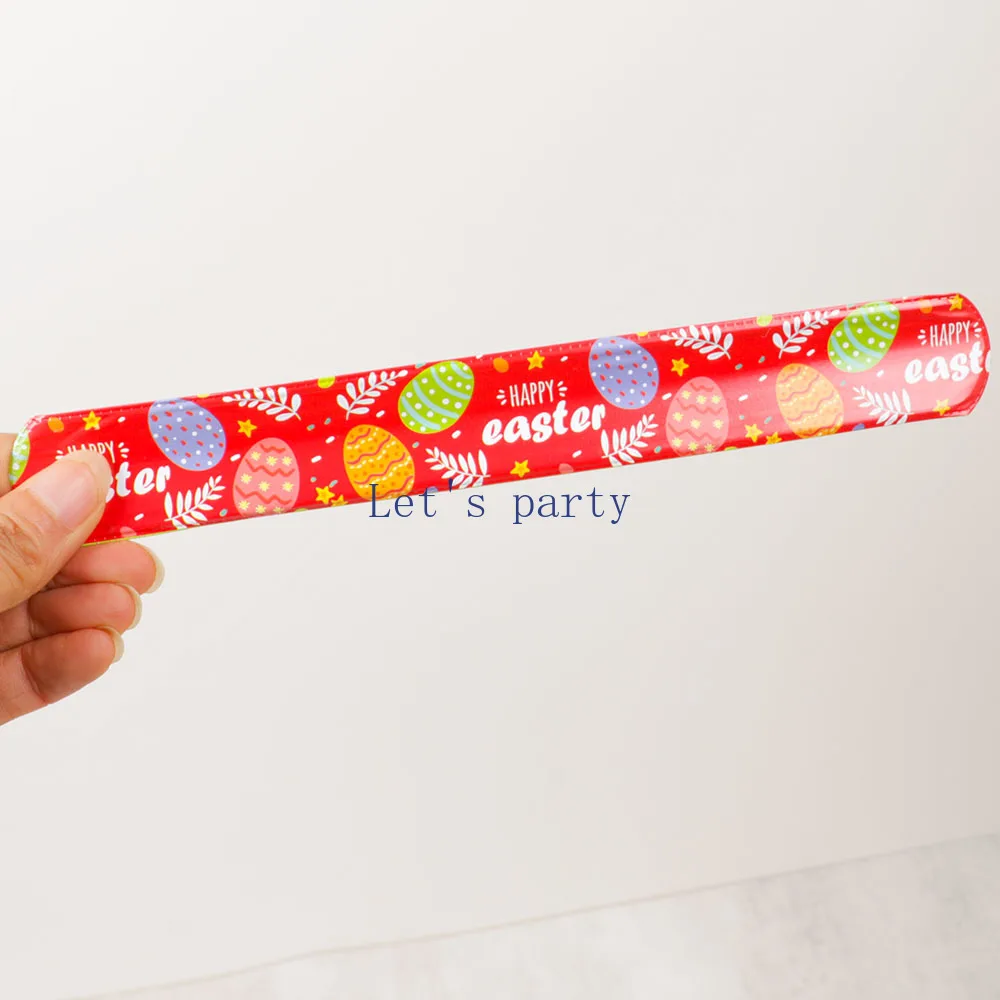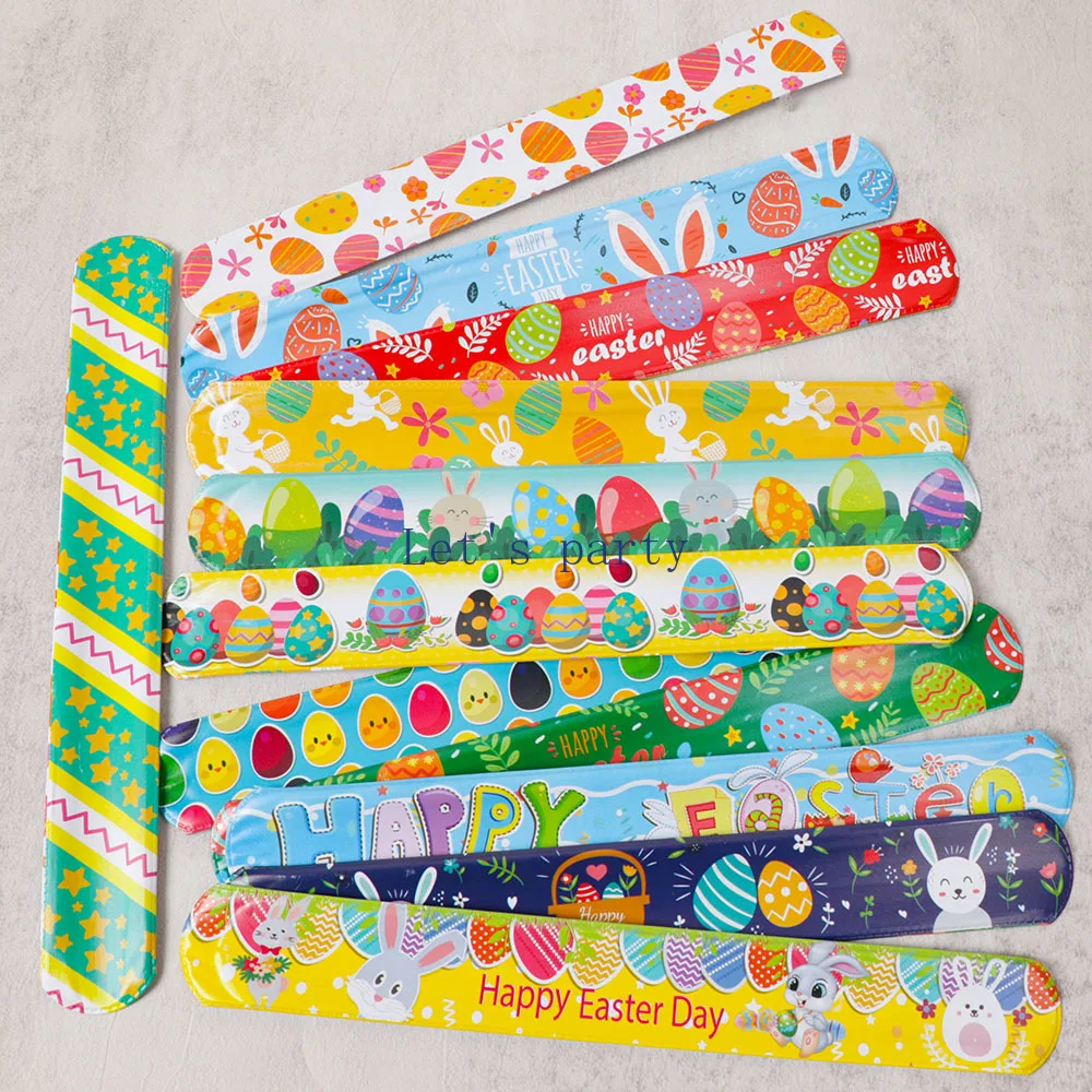 12Pcs Happy Easter Theme Slap Bracelets Eggs Bunny Rabbit Wristband Toy for Kids Birthday Party Favors Easter Gifts Goodie Bag