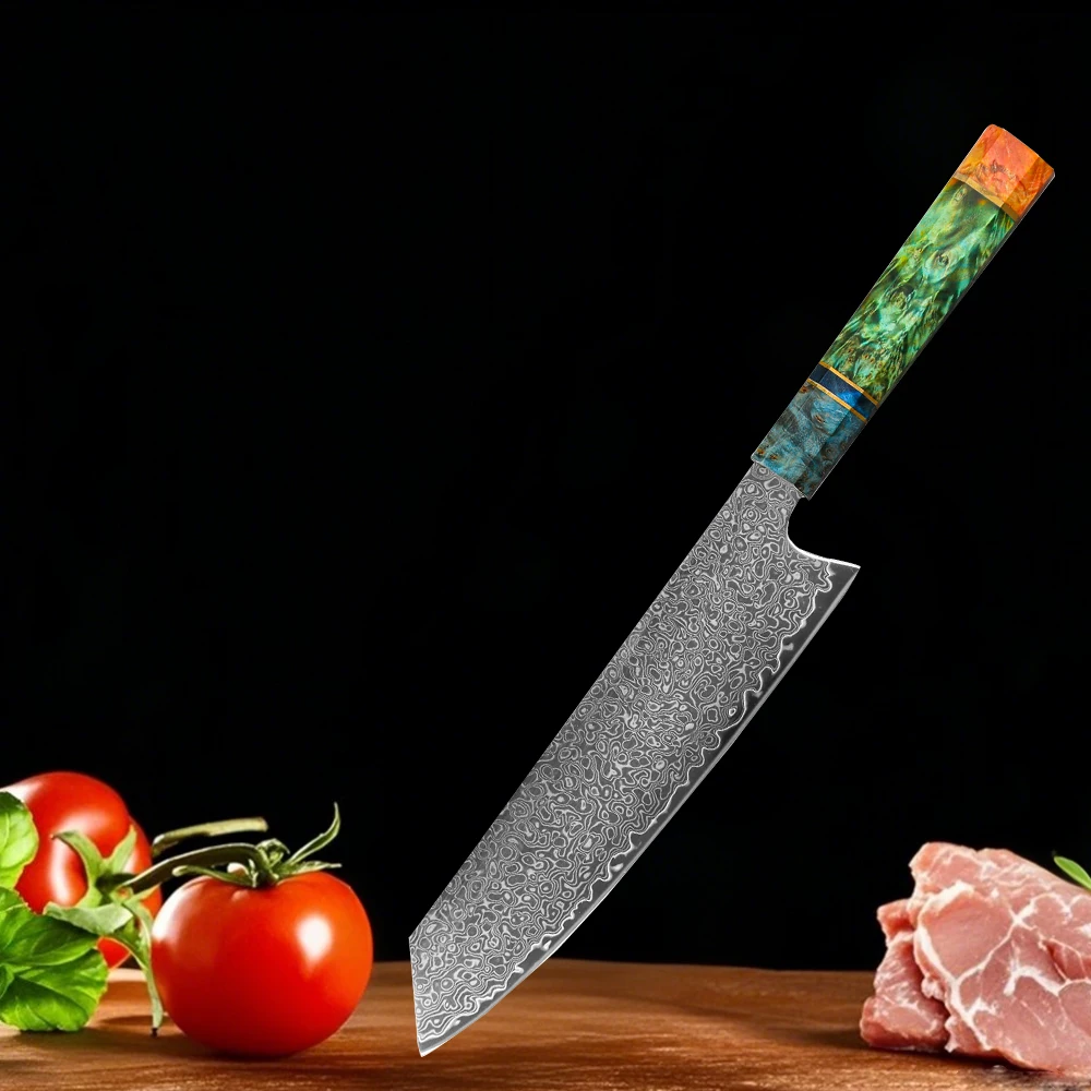 • 8 Inch Chef Knife 67 Layers VG10 Damascus Steel Kitchen Knives Vegetable Meat Cooking Tools Stabilized Colored Wood Handle