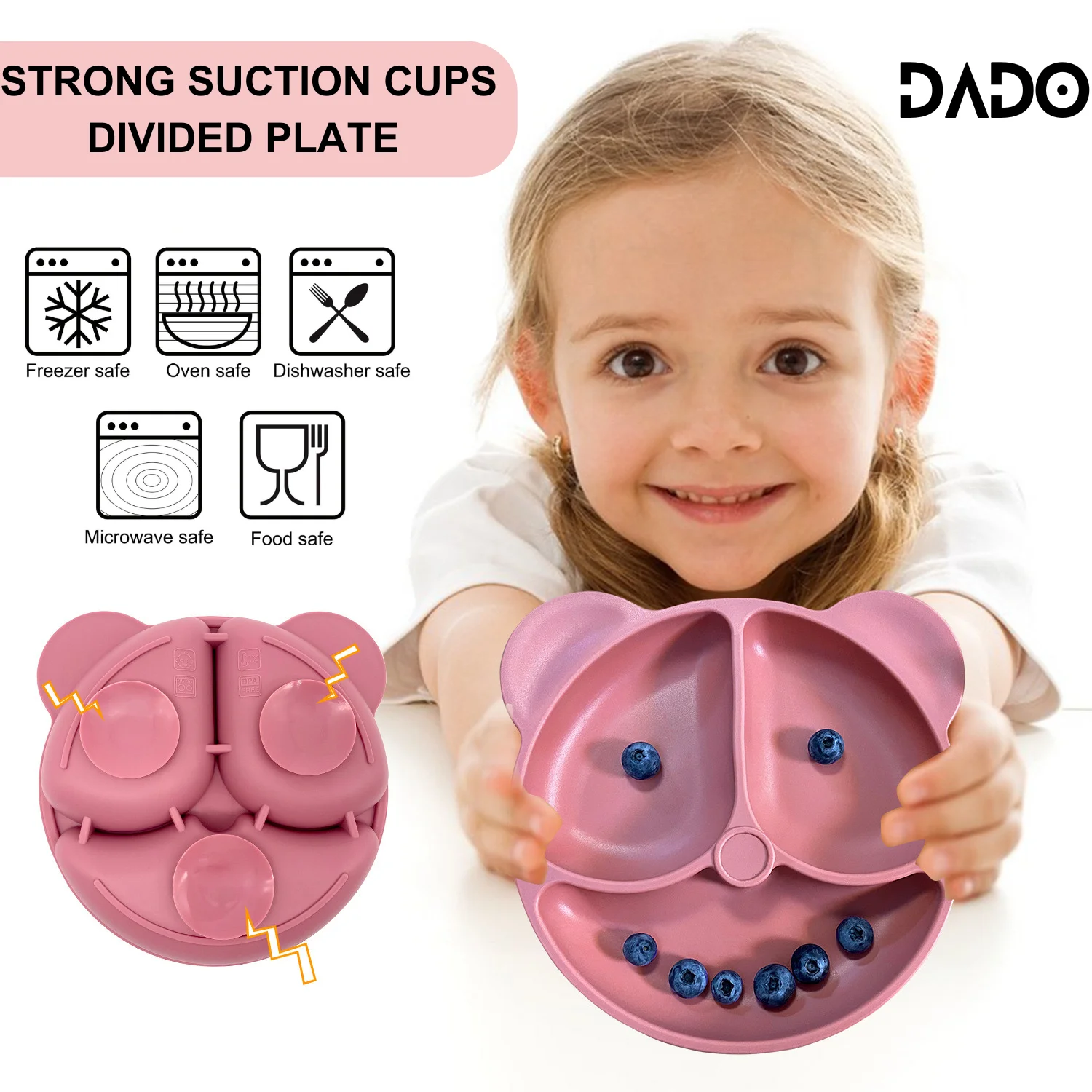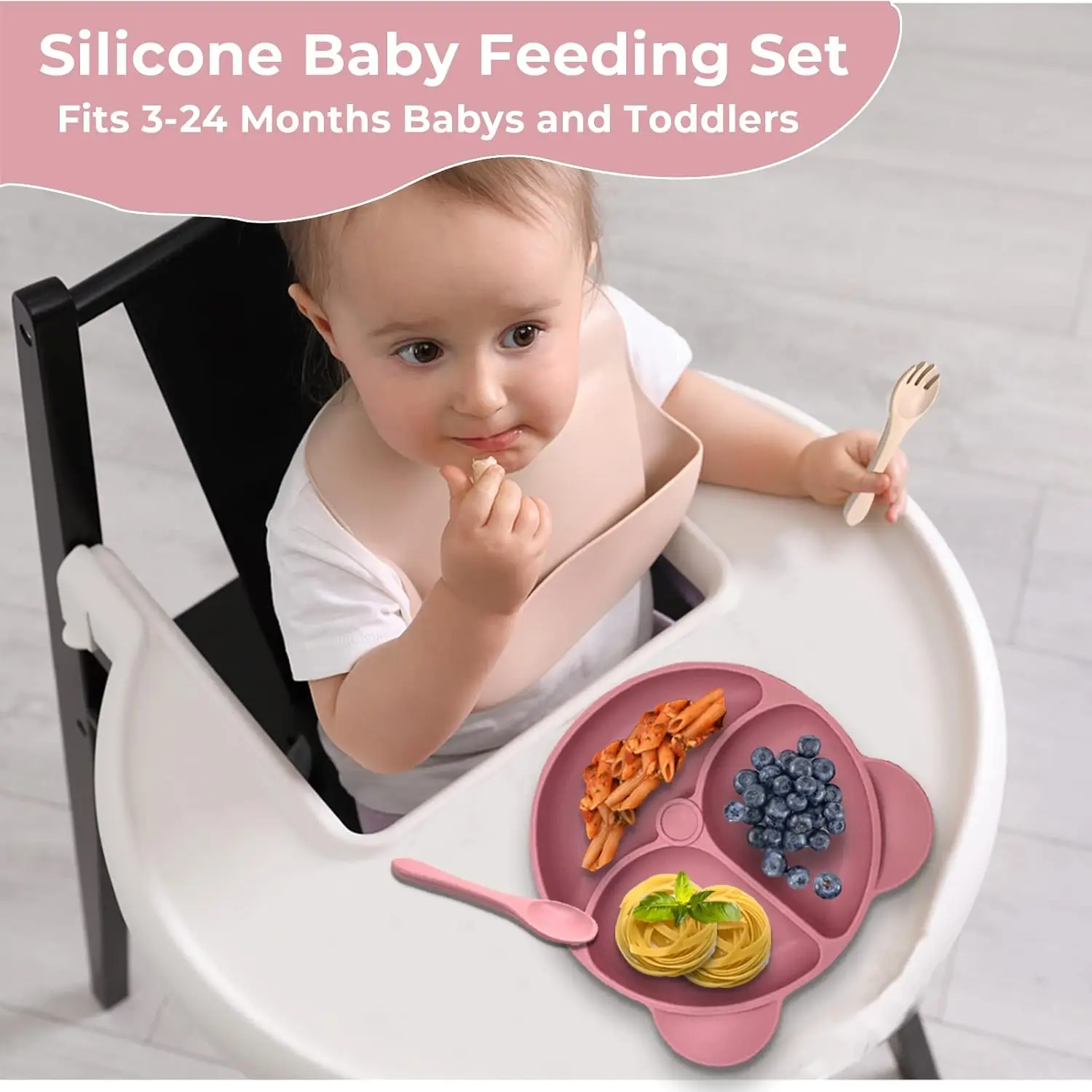 [DIVIDED SUCTION TODDLER PLATE] – Give your little one more independence at mealtimes with their very own silicone plate featuring 3 divided sections. The non-slip design will ensure the plates cannot be thrown on the floor, therefore reducing mess