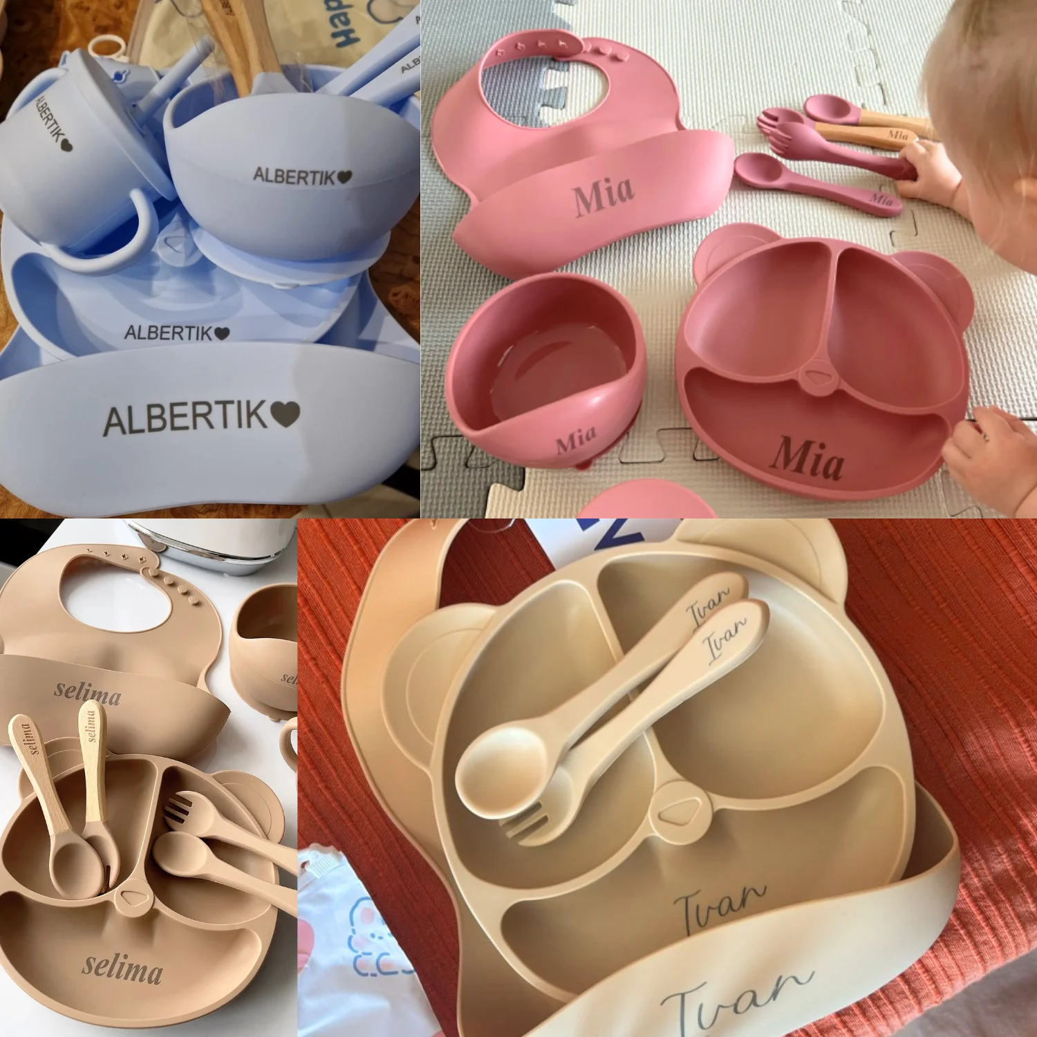 - 4/5/7 soft silicone baby set with baby name