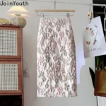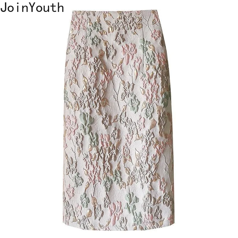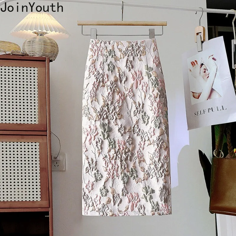 Floral Skirts for Women Korean Jupe 2025 Faldas Mujer De Moda High Waist A-line Fashion Saia Split Bodycon Temperament Skirt