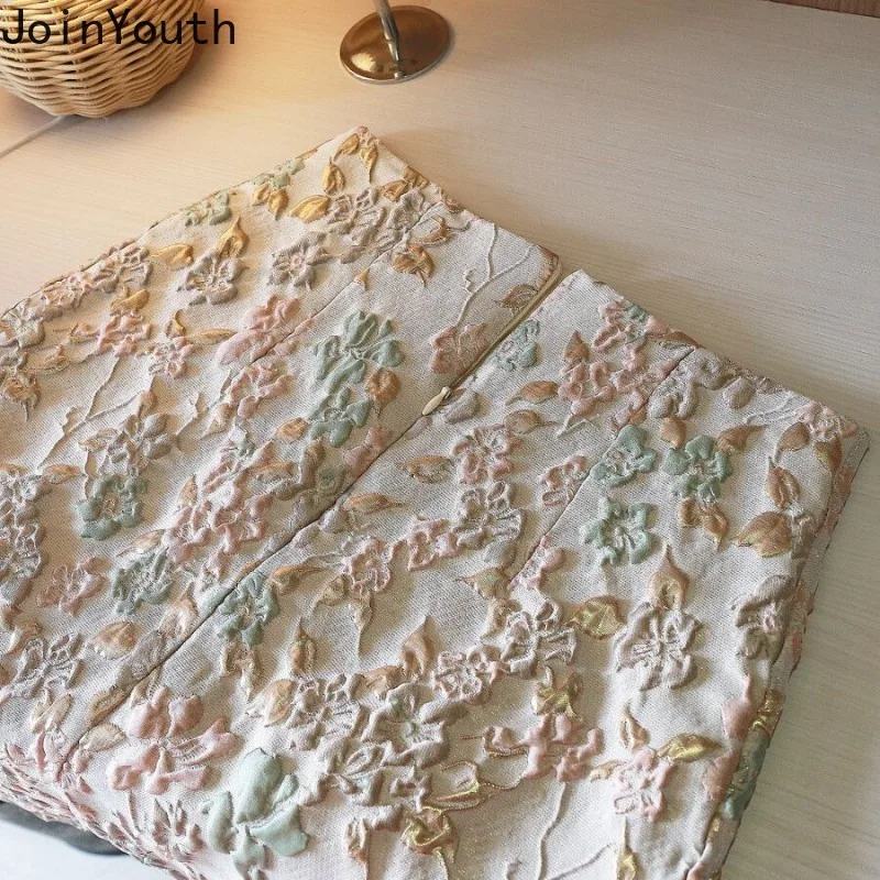 • Floral Skirts for Women Korean Jupe 2025 Faldas Mujer De Moda High Waist A-line Fashion Saia Split Bodycon Temperament Skirt