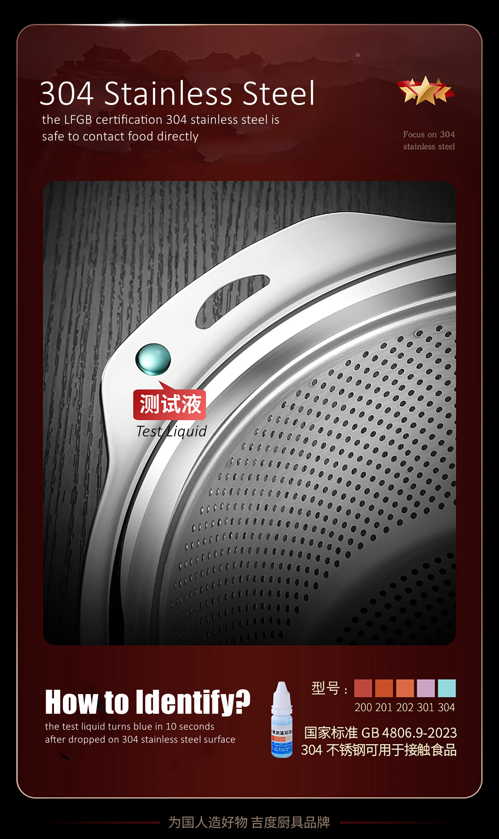 - Steel Type: 304 stainless steel