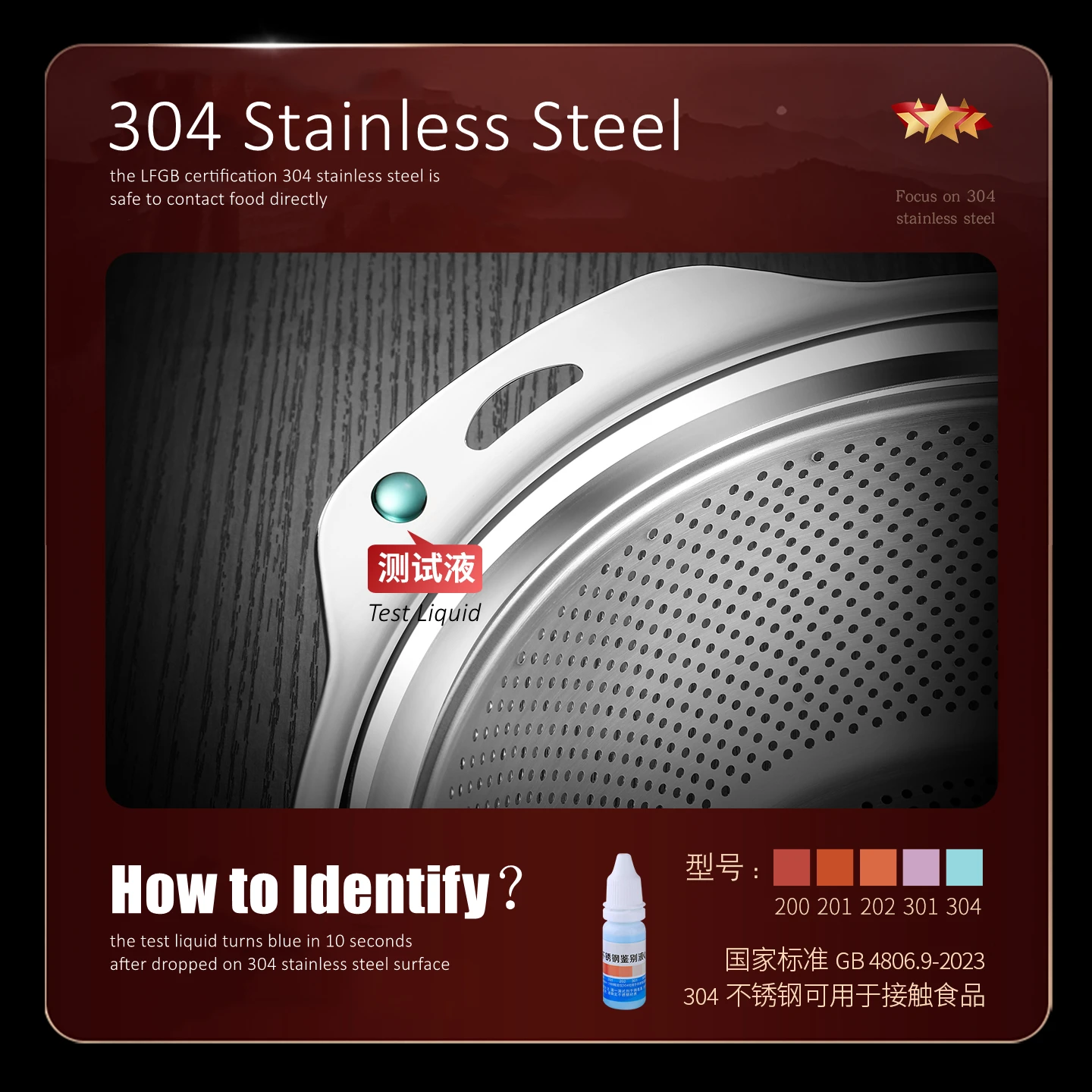 - Steel Type: 304 stainless steel
