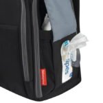 This backpack comes with a matching changing pad for convenience, a baby wipes dispenser pocket for easy access, and an insulated bottle pocket to keep your little one’s bottle warm.