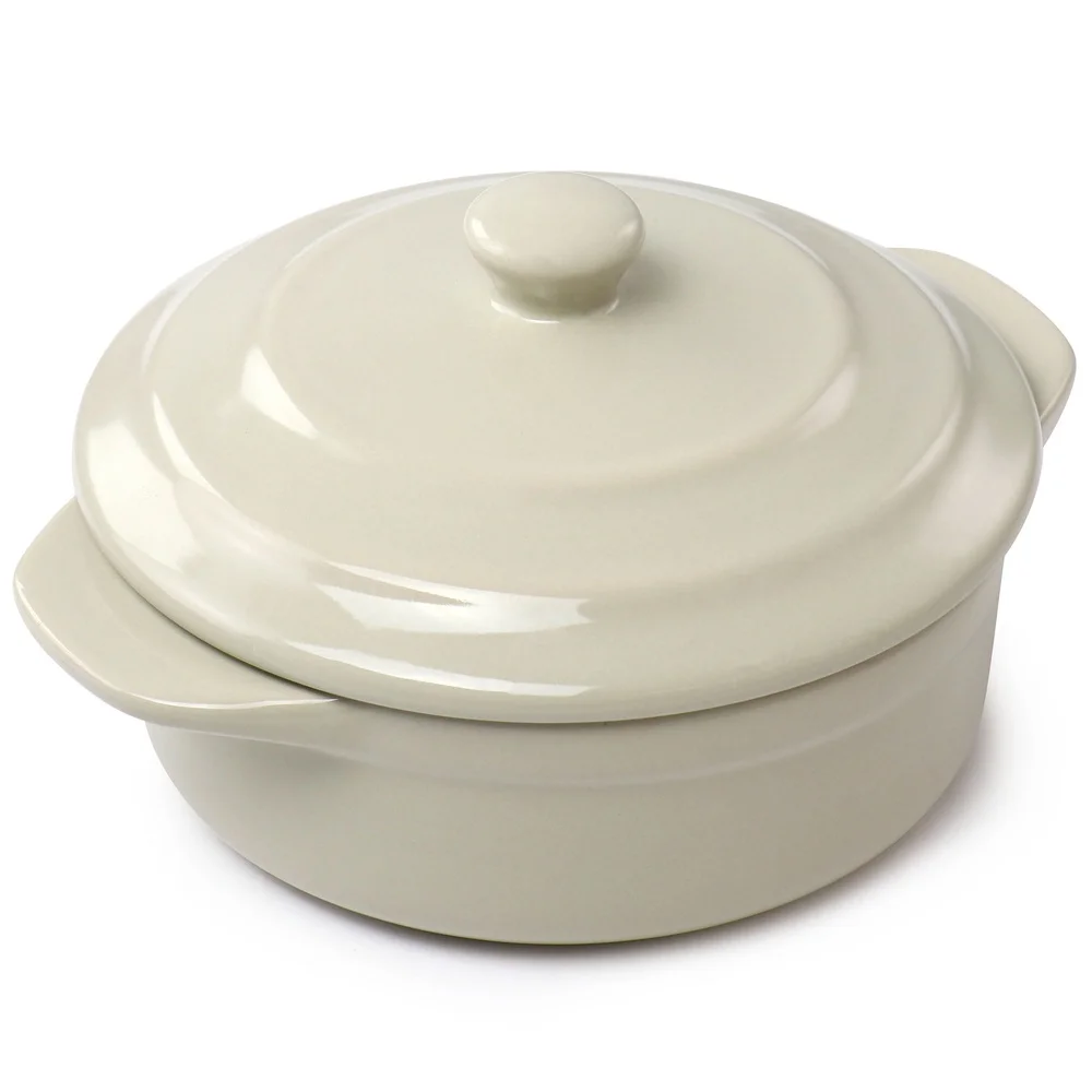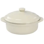Serve up your favorite single-serving meals, sides, sauces, desserts, and more with this mini casserole. This 5-inch round casserole dish is the perfect size for single-serving baked meals. Serve guests in style with their own dish or take this two-piece casserole out when you simply need a meal or dessert for one. Constructed of durable stoneware material with a beautiful glossy finish that is dishwasher, microwave, and oven safe for long-lasting use. Side handles and a lid knob make transport from oven to table easy; handle with care when heated.