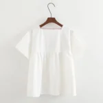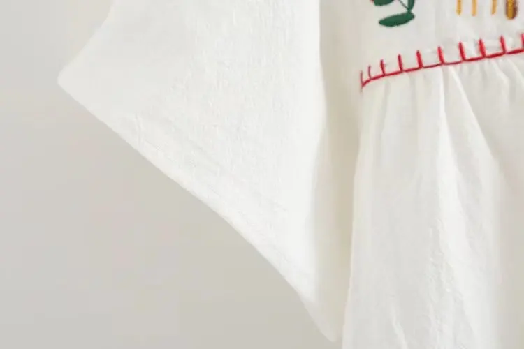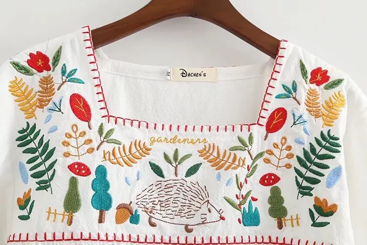 Morigirl 100% cotton plant flower embroider white square collar shirts and blouses for women summer literature tops