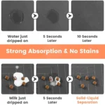 【Strong Absorbent & Stain-Resistant】 Our dog food mat boasts exceptional absorbency, quickly soaking up any spilled water & milk and leaving no traces behind. It effectively prevents wet paws and keeps your pet’s eating area clean.
